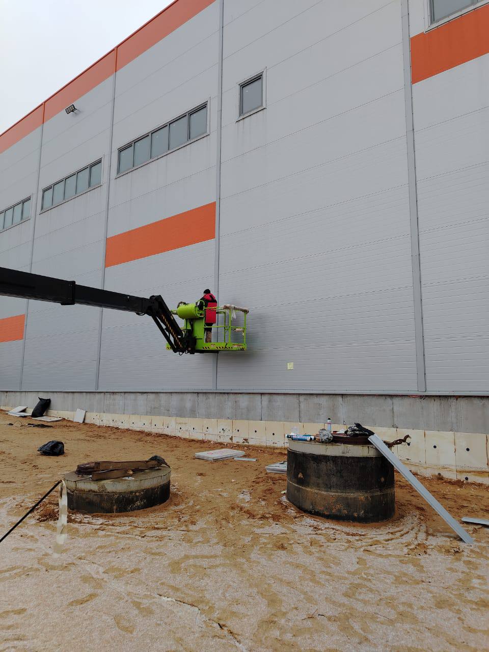 Замена поврежденных стеновых сэндвич-панелей на фасаде производственно-складского здания