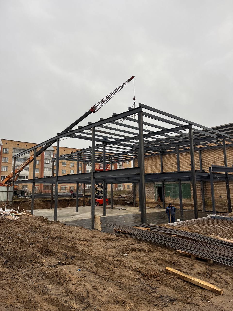 Продолжаются работы по изготовлению и монтажу пристроек к зданию торгового центра